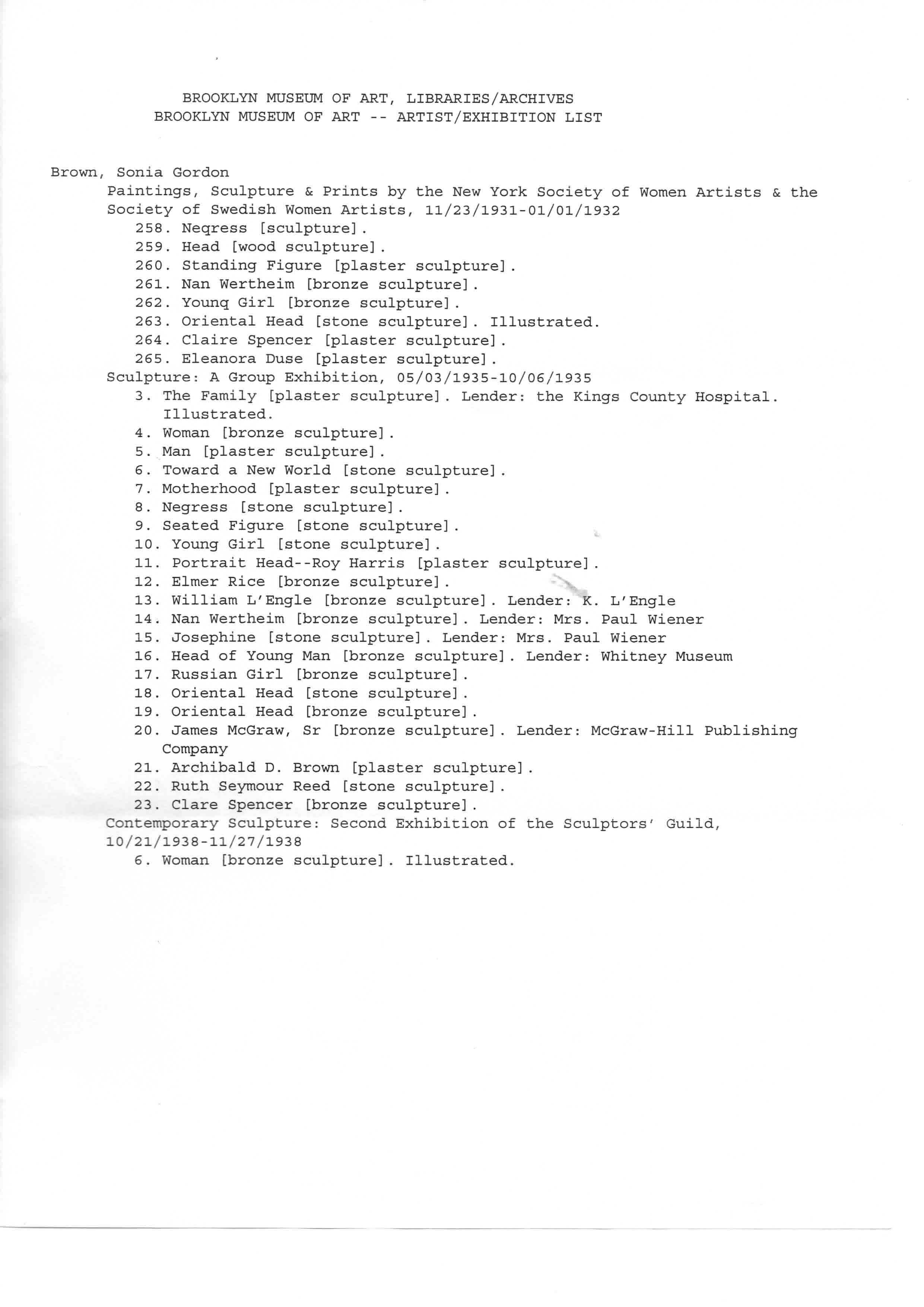 Note: Elenco delle opere di Sonia Gordon Brown
